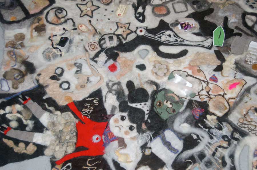 Below are pictures of the collaborative textile that we worked on at the Dumbo Arts Festival. It is a felted construction made from local wool and reclaimed textiles.